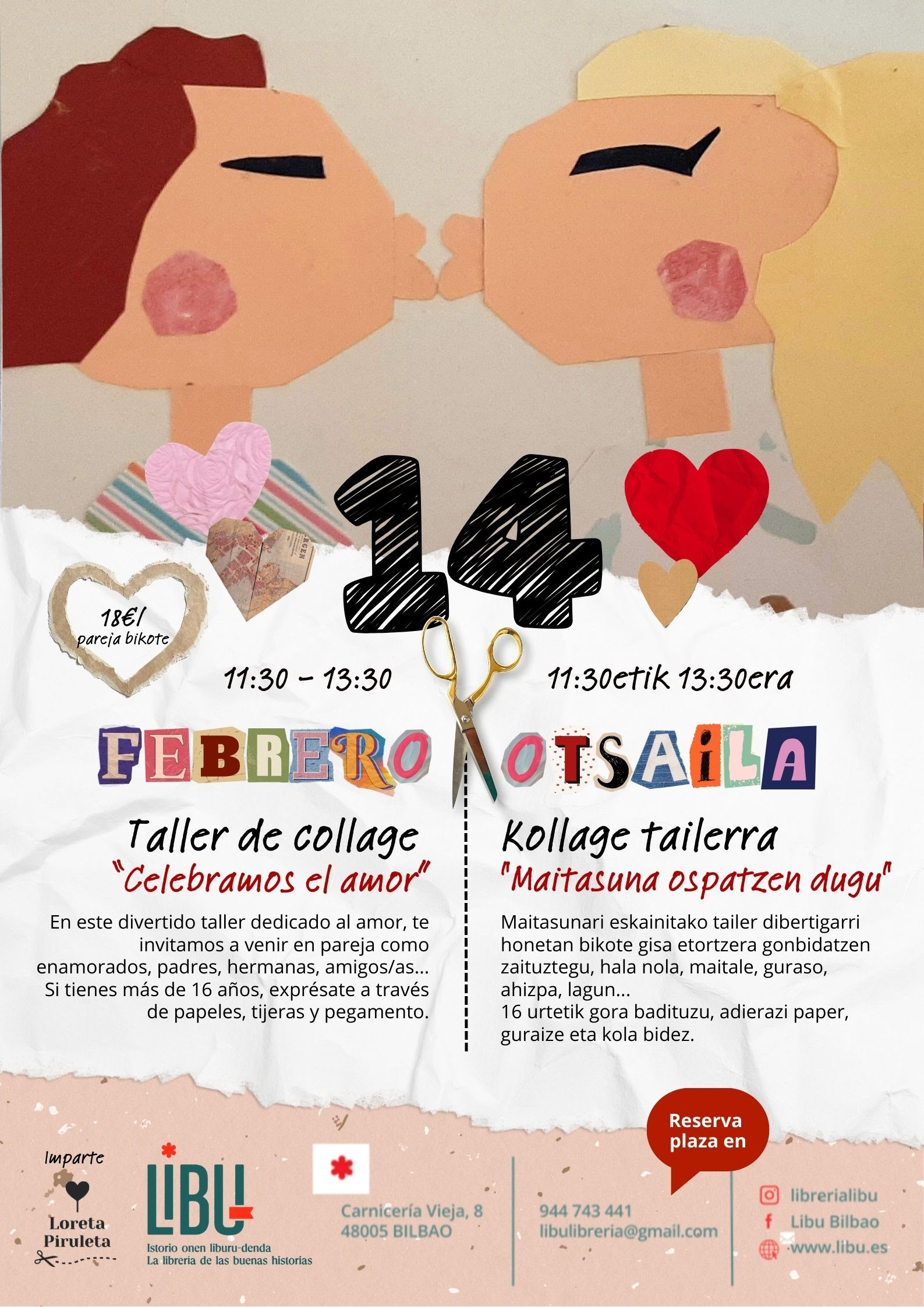Celebremos el amor en todas sus facetas. Trae a la persona que tu quieras: tu pareja, tu ama. tu aita, tu hermana, tu hijo y venid a compartir un buen rato juntas mientras os adentráis en el mundo del collage. De la mano de loreta piruleta que nos guiará en este recorrido.