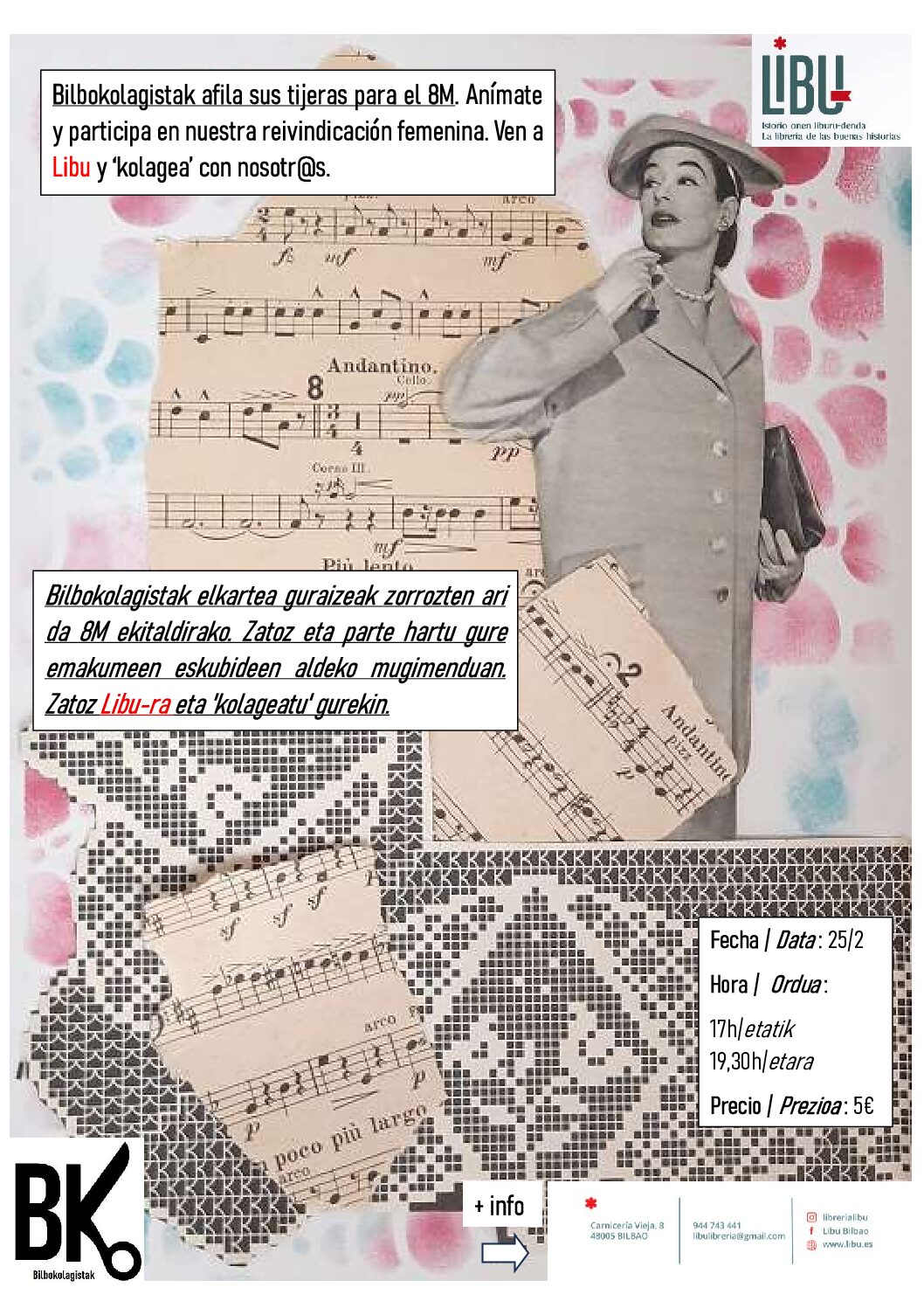 Como cada último miércoles de mes, nos juntamos para crear en formato Collage. En esta ocasión Bilbokolagistak afila sus tijeras para el 8M. Anímate y participa en nuestra reivindicación femenina. Ven a Libu y ‘kolagea’ con nosotr@s.